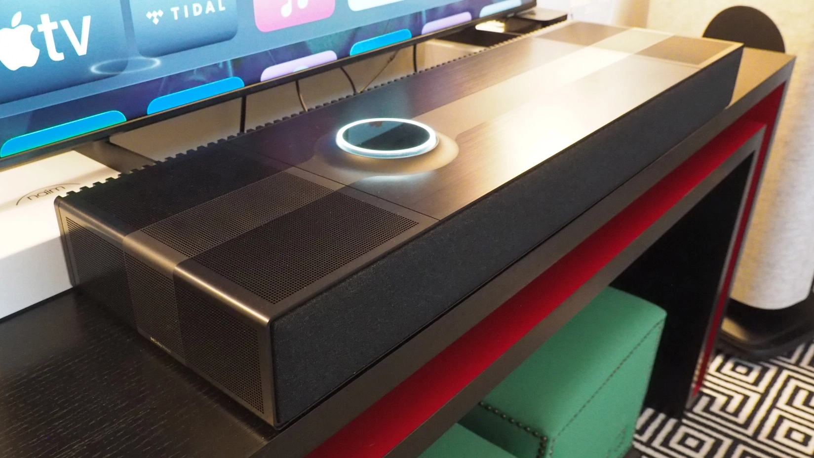 Immersiv ist sie allemal: 15 Treiber – sieben vorne, je zwei an den Seiten und vier oben – sind so angeordnet, dass sie dreidimensionalen Dolby-Atmos-Sound richtig zur Geltung bringen. Für den nötigen Nachdruck sorgen 660 W Leistung.
